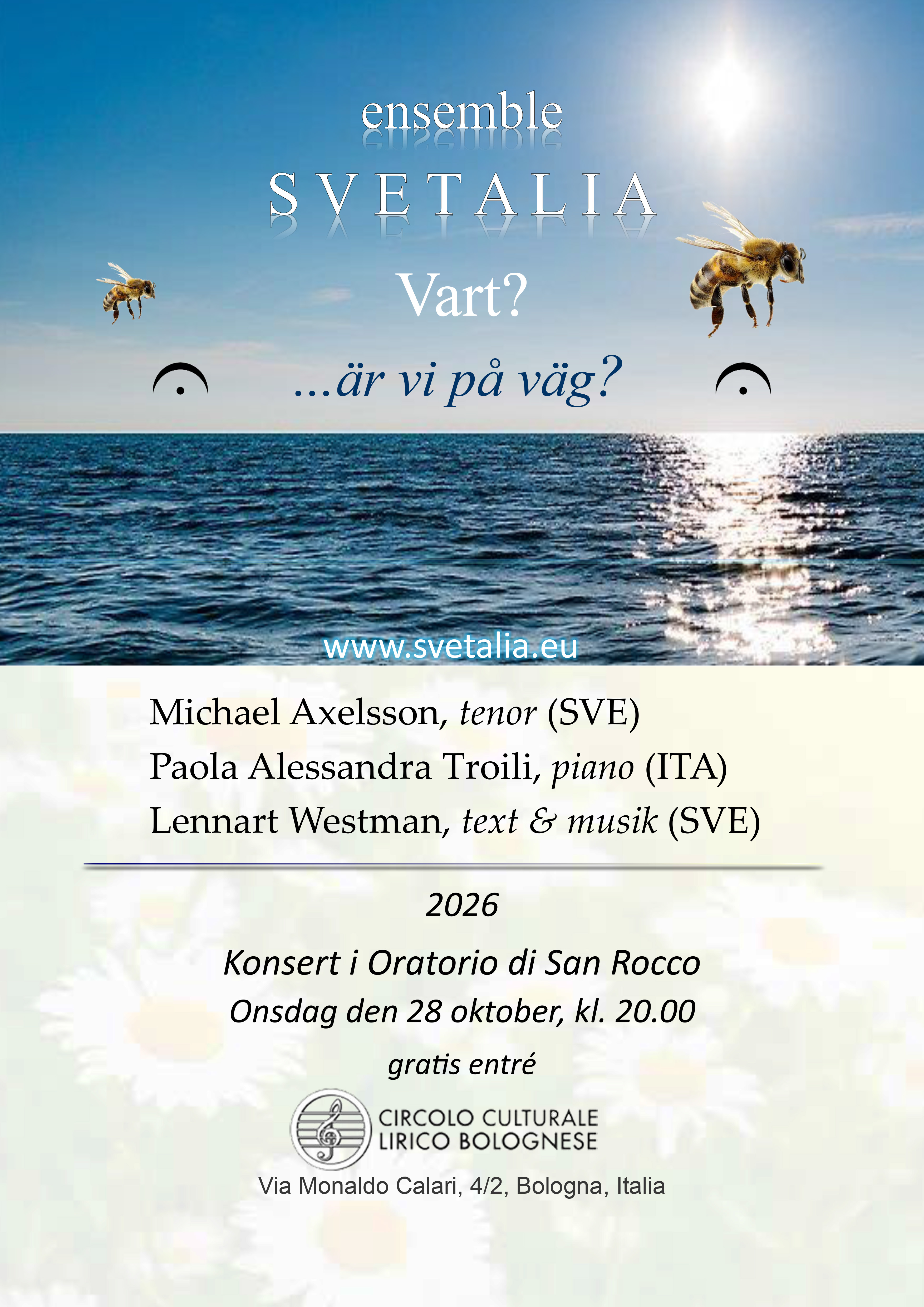 Ett spirituellt utbyte i ord och ton mellan Sverige och Italien. Läs mer här: www.svetalia.eu