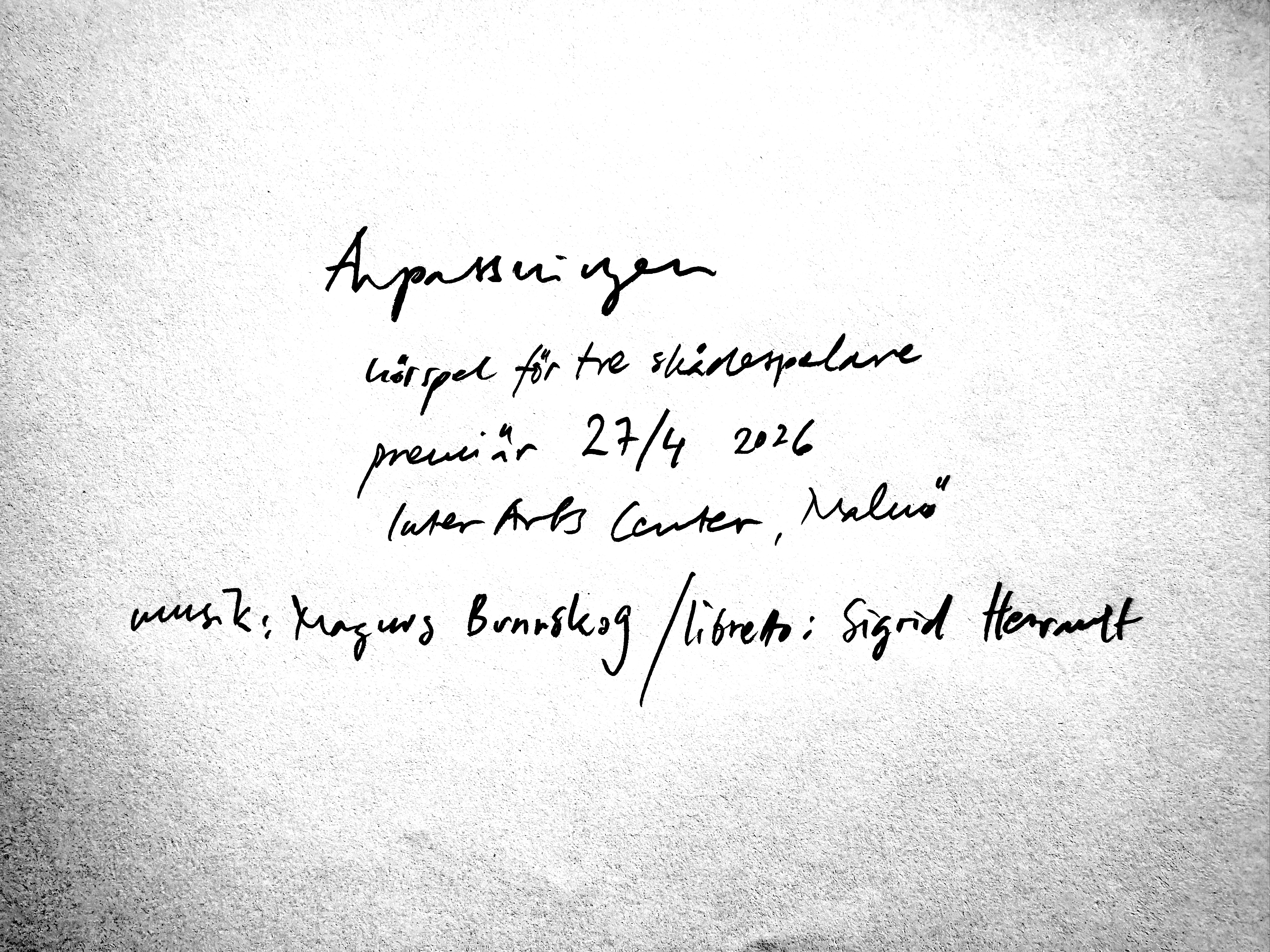 Med stöd av: Kulturrådet, Bernadotteprogrammet vid Kungliga Musikaliska Akademien, Svenska Akademien, Konstnärsnämnden, Teaterhögskolan vid Luleå Tekniska Universitet